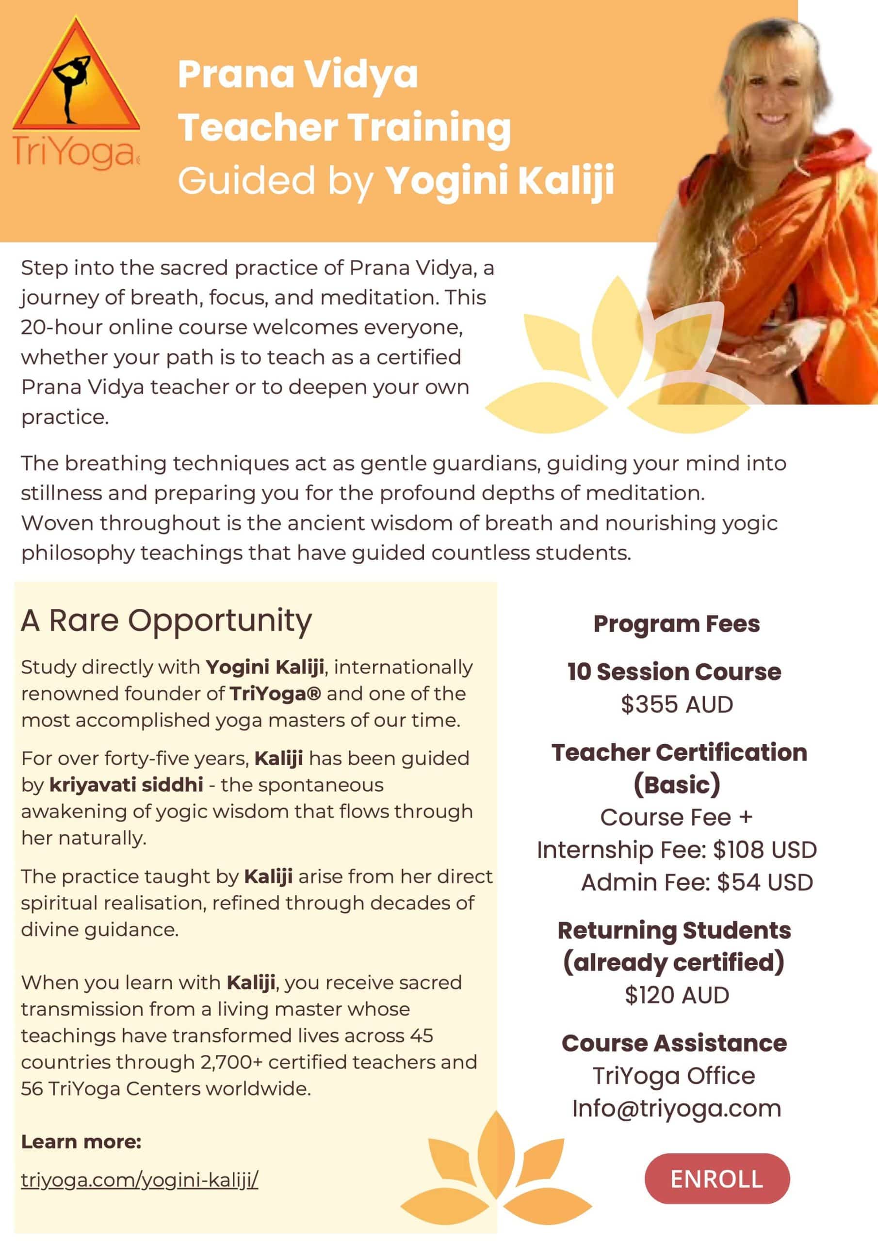 Prana Vidya Course Fee: $355 AUD